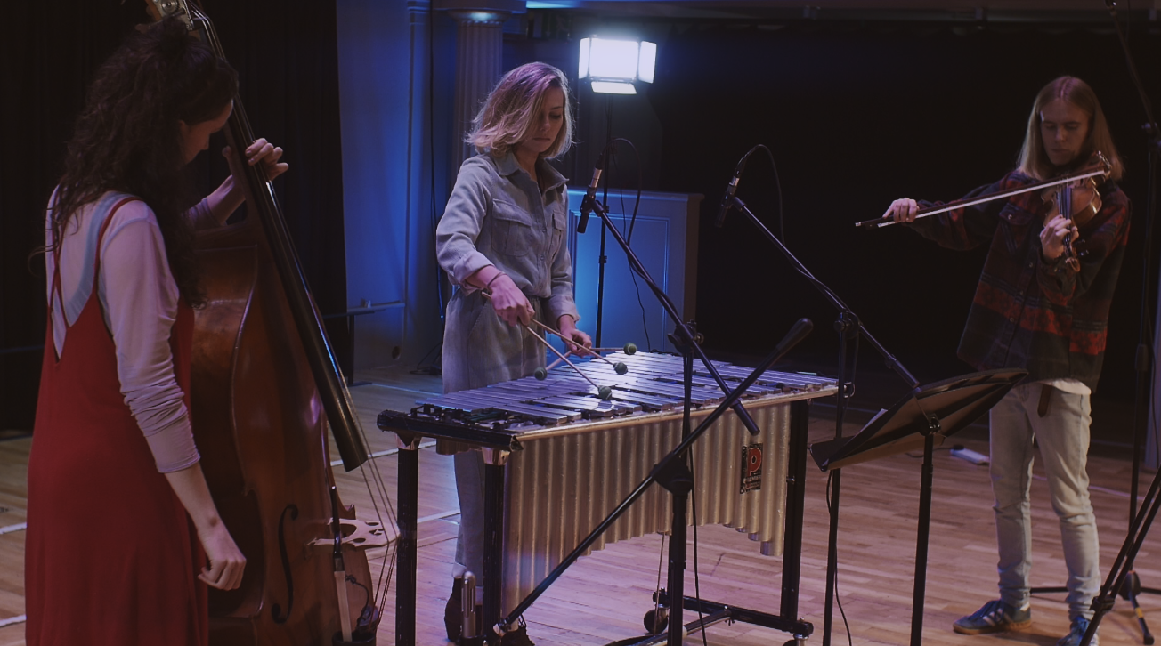 Harriet Riley & Alex Garden’s debut album presents a novel, hypnotic dialogue between a highly unusual pairing of instruments: fiddle and vibraphone.  Inspired by arcane single word track titles, obscure definitions are presented to guide the listener’s attention through their original compositions, taking in trad folk, minimalism and jazz along the way. The album was recorded in Bristol during the summer of 2020 and released in November the same year. Their February 2022 tour features special guest Stevie Toddler on double-bass, promising to transfix audiences far and wide with their captivating new sound-world.